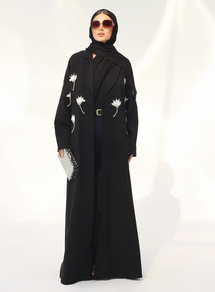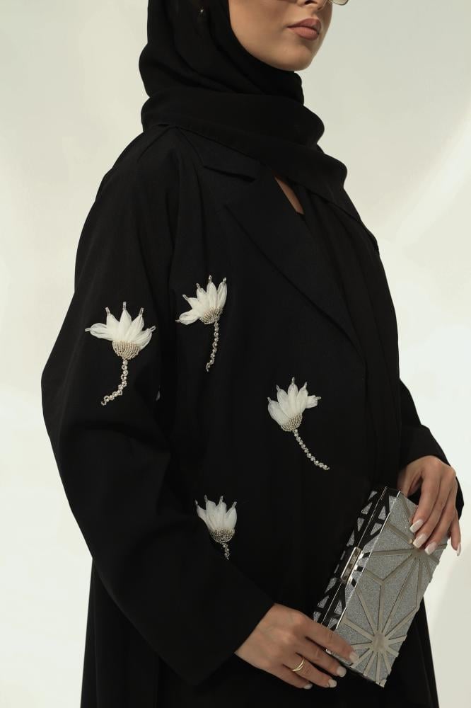 عباية مطرزة ورد أنيقة وعملية، مصممة بتطريز جذاب على شكل ورد لتضفي لمسة فخامة على إطلالتك اليومية.